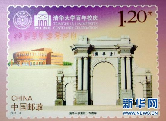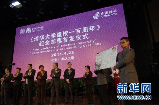 《清華大學建校一百周年》紀念郵票首發儀式在清華大禮堂舉行。配合該套郵票發行的還有首日封、郵折、《百年清華·珍郵寄情》和《教育與未來》專題郵冊等教育題材郵品。新華社記者趙琬微攝