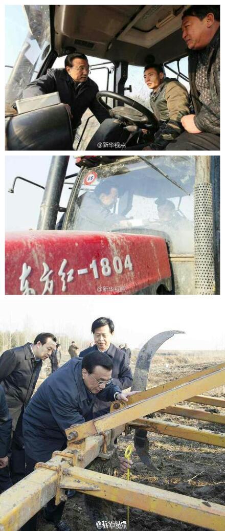 據新華社“新華視點”微博報道,5日一早,李克強到撫遠縣紅旗村查看農田深松情況。地里兩臺拖拉機正在作業,李克強踩著濕滑的田壟,登上駕駛室,拽著扶手與農機手攀談,詢問購機補貼,與他們一起細算成本賬收入賬。李克強說,深松土地節肥保水抗旱抗澇,相當于土地輪休,是個好辦法。