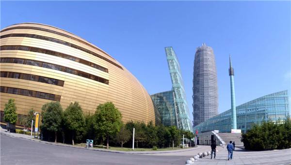 這是位于河南省鄭州市鄭東新區的河南藝術中心和千璽廣場(2012年10月11日攝)。