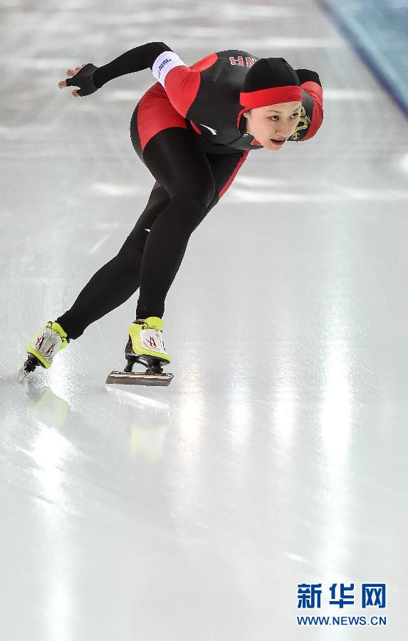 2月11日,張虹在比賽中。當日,在索契冬奧會速度滑冰女子500米比賽中,中國選手張虹以75秒58的成績獲得第四名。新華社記者王昊飛攝