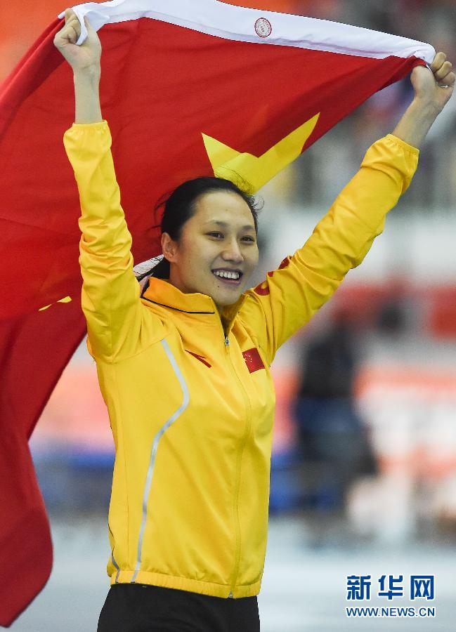 2月13日,中國選手張虹慶祝勝利。當日,在2014年索契冬奧會速度滑冰女子1000米比賽中,中國選手張虹以1分14秒02的成績奪得冠軍。新華社記者王昊飛攝