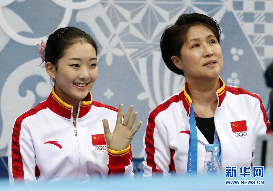 2月20日,李子君(左)和教練在賽后等待成績。當日,在2014年索契冬奧會花樣滑冰女子單人滑比賽中,中國選手李子君以168.30分的成績獲第14名。 新華社記者王麗莉攝