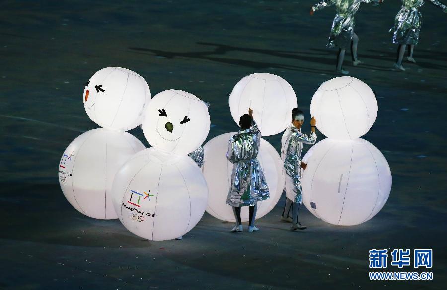 2月23日,韓國演員在閉幕式上表演。下屆冬奧會將在韓國平昌舉行。當日,第22屆冬奧會閉幕式在菲施特奧林匹克體育場舉行。 新華社記者龔兵攝
