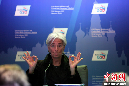 2013年G20二十國集團財長和央行行長會議16日在莫斯科閉幕,圖為國際貨幣基金組織(IMF)總裁拉加德在會后接受記者采訪。中新社發賈靖峰 攝