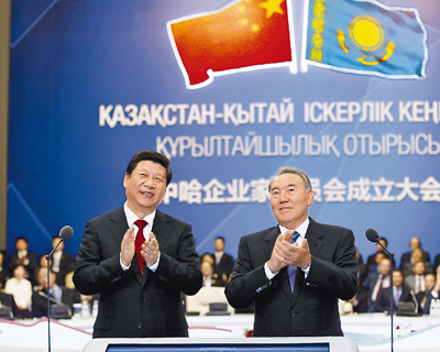 習(xí)近平7日在阿斯塔納同哈薩克斯坦總統(tǒng)納扎爾巴耶夫共同出席中哈企業(yè)家委員會(huì)成立大會(huì)。兩國元首分別致辭。習(xí)近平祝賀中哈企業(yè)家委員會(huì)成立。習(xí)近平指出,中哈互為重要合作伙伴,務(wù)實(shí)合作碩果累累。這些合作成果不僅為兩國人民帶來了實(shí)實(shí)在在的好處,也為中哈關(guān)系發(fā)展提供了不竭動(dòng)力。