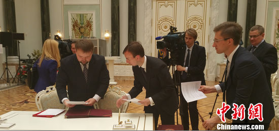 如運動員入場一般,外交部部長王毅、商務部部長高虎城、教育部副部長郝平、海關總署署長于廣洲、社科院院長王偉光、工業和信息化部副部長許達哲、浙江省省長李強、江蘇省副省長張雷、四川省副省長甘霖、甘肅省副省長李榮燦、進出口銀行董事長胡曉煉等組成了這支“中國隊”,與白俄羅斯相應機構的官員一起,排隊等候“上場”。