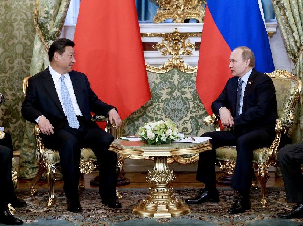 從中午到下午,綠廳小范圍會談、葉卡捷琳娜廳大范圍會談、孔雀石廳出席簽字儀式和共同會見記者,習近平和普京談紀念衛國戰爭慶典、談二戰教訓和戰后國際秩序,更少不了談中俄戰略對接,談深化務實合作。