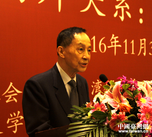 臺灣二十一世紀基金會董事長高育仁在第三屆兩岸智庫學術論壇上致辭。(中國臺灣網 李杰 攝)