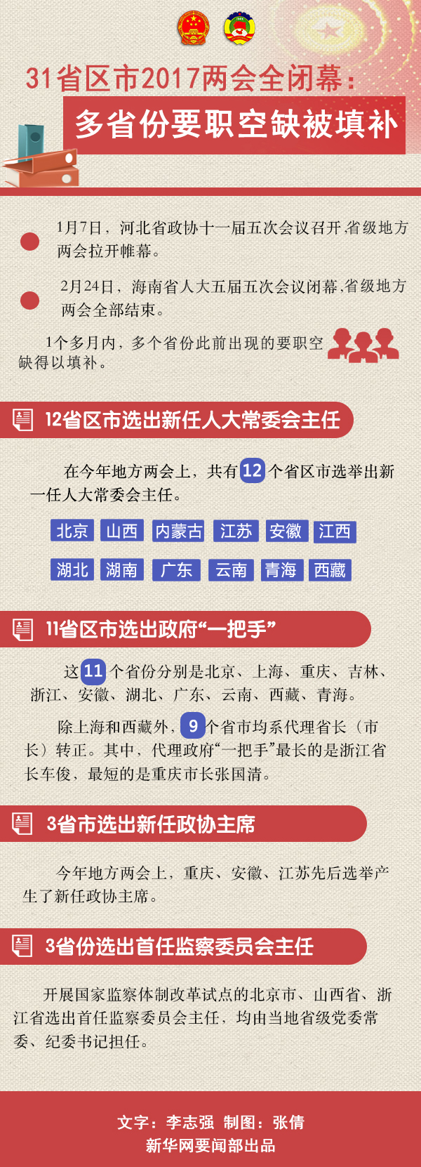 【圖解】31省區市2017兩會全閉幕:多省份要職空缺被填補