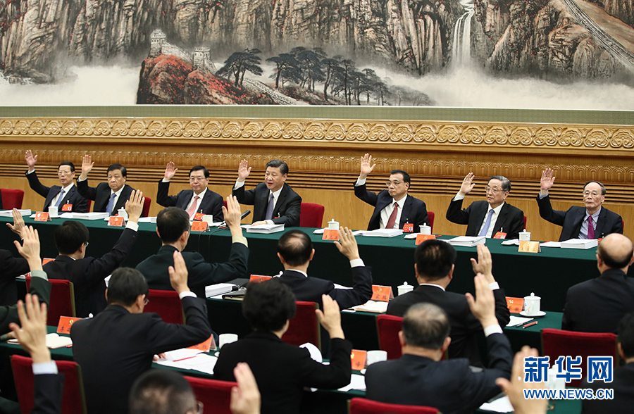 10月23日,中國共產黨第十九次全國代表大會主席團在北京人民大會堂舉行第四次會議。習近平、李克強、張德江、俞正聲、劉云山、王岐山、張高麗等出席會議。新華社記者 蘭紅光 攝