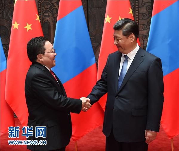 習(xí)近平強(qiáng)調(diào),我十分關(guān)心和高度重視中蒙關(guān)系。兩國(guó)領(lǐng)導(dǎo)人要保持密切交往和戰(zhàn)略溝通,實(shí)實(shí)在在推進(jìn)兩國(guó)合作。兩國(guó)立法機(jī)構(gòu)、政黨、軍隊(duì)也要加強(qiáng)交往。中蒙經(jīng)濟(jì)互補(bǔ)性強(qiáng)。中方開展對(duì)蒙合作堅(jiān)持互利雙贏原則,不搞我贏你輸、我多你少。中方愿本著礦產(chǎn)資源開發(fā)、基礎(chǔ)設(shè)施建設(shè)、金融合作“三位一體、統(tǒng)籌推進(jìn)”原則,以互聯(lián)互通建設(shè)為優(yōu)先方向,以建設(shè)絲綢之路經(jīng)濟(jì)帶為契機(jī),拓展兩國(guó)合作,鼓勵(lì)有實(shí)力的中國(guó)企業(yè)赴蒙投資興業(yè)。中方支持蒙方積極參與國(guó)際和地區(qū)事務(wù),愿同蒙方加強(qiáng)在聯(lián)合國(guó)、上海合作組織等框架內(nèi)合作。