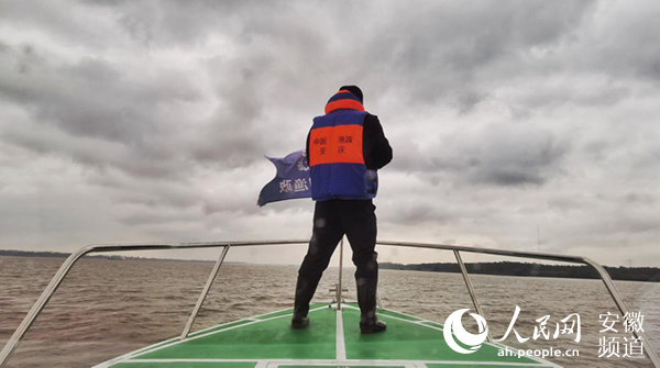 長江江豚管護(hù)隊(duì)隊(duì)員站在船頭巡護(hù)長江。周坤攝