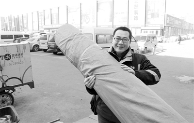 1月22日,圓通快遞員劉書杰在給家具城派送快件,這是他今天第二頻次送貨。 本報(bào)記者 李鵬翔攝