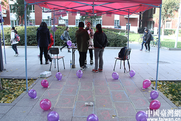北京師范大學兩岸四地青年交流協會的學生們早早地來到體育館外布置攤位,他們為兩岸四地青年交流所做的努力,如同陽光在這個寒冷的初冬讓人感到溫暖。