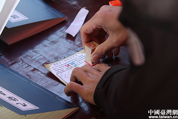 在游戲紙上收集印章兌換紀念品(中國臺灣網 記者 崔瀝心 攝)