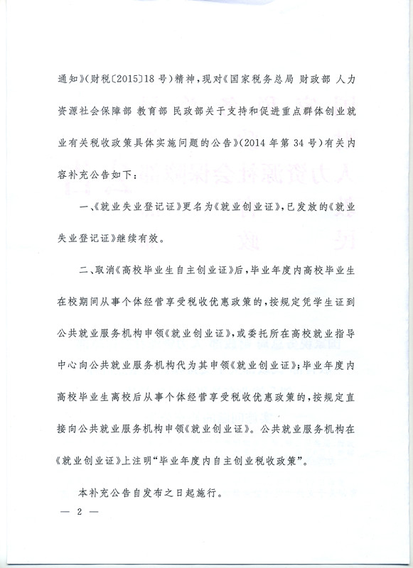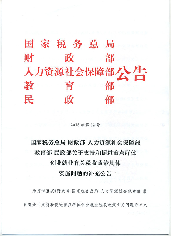 關于支持和促進重點群體創業就業稅收政策有關問題的補充通知(圖)
