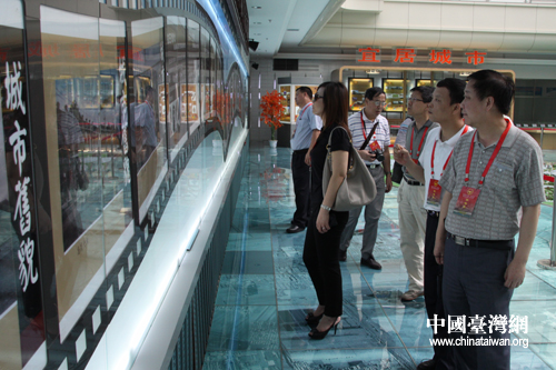 海外中國統(tǒng)促會會長們在佳木斯市城市規(guī)劃展示館參觀。(中國臺灣網(wǎng) 徐維彬 攝)