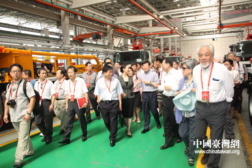 統促會參訪團興致勃勃地走進三一重工集團的生產車間。(中國臺灣網 王君飛 攝)