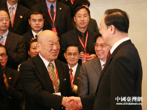 中國(guó)臺(tái)灣網(wǎng)4月9日北京消息 今天,全國(guó)政協(xié)副主席、中央統(tǒng)戰(zhàn)部部長(zhǎng)杜青林在北京會(huì)見(jiàn)了參加中國(guó)和平統(tǒng)一促進(jìn)會(huì)第七屆海外統(tǒng)促會(huì)會(huì)長(zhǎng)會(huì)的全體人員。