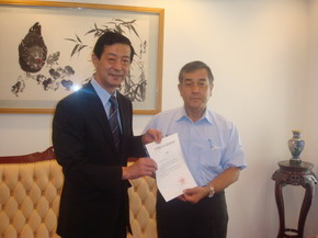 8月25日,東京華僑總會會長廖雅彥等專程來到中國駐日本大使館,向臺灣受災地區捐款。許澤友參贊兼總領事代表使館接受捐款,并高度贊揚東京華僑總會和東京華聯旅行社為祖國寶島臺灣慷慨解囊的義舉。