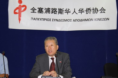 趙大使在致辭中對全塞浦路斯華人華僑協會的成立表示衷心祝賀,他說,這是中塞建交38年來在塞成立的第一個華人華僑的組織,是旅塞華人的一件大事,值得慶賀。趙大使還希望協會成立后,大家能夠團結一致,努力工作,為維護華人華僑的合法權益,增進中塞兩國人民之間的友誼,促進中塞兩國在經濟和文化等領域的交流與合作發揮積極的作用。