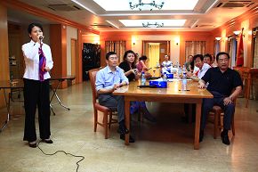 使館各單位分別演唱了《我的祖國(guó)》、《英雄贊歌》、《北京的金山上》、《沒(méi)有共產(chǎn)黨就沒(méi)有新中國(guó)》、《十月是你的生日》、《黨啊,親愛(ài)的媽媽》等膾炙人口的歌曲。一首首經(jīng)典歌曲,抒發(fā)了館員對(duì)偉大的祖國(guó)和偉大的中國(guó)共產(chǎn)黨的無(wú)限熱愛(ài)。歌詠會(huì)氣氛熱烈、活躍。