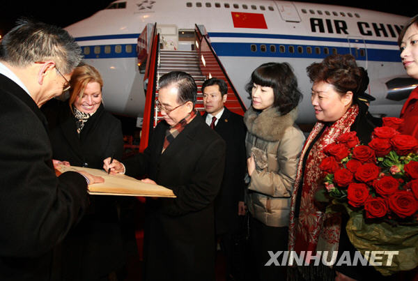 12月16日,中國國務(wù)院總理溫家寶抵達(dá)丹麥?zhǔn)锥几绫竟鱿绫竟鶜夂蜃兓瘯?huì)議。這是溫家寶抵達(dá)后在貴賓簽名簿上簽名。新華社記者龐興雷攝