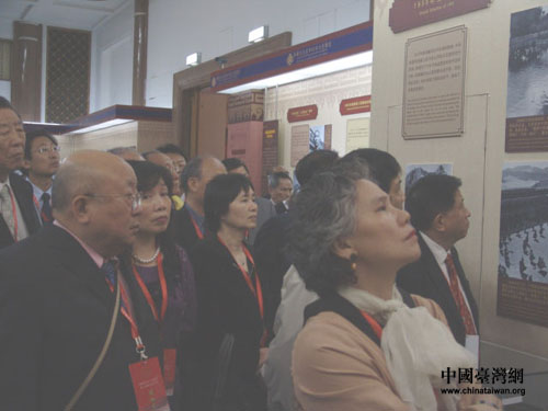 4月25日下午,中國和平統一促進會第八屆海外統促會會長會的與會代表,參觀西藏民主改革50年大型展覽。(中國臺灣網 楊麗 攝)