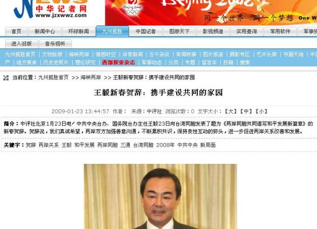 王毅:展望2009年,兩岸關(guān)系方向明確,前景光明。