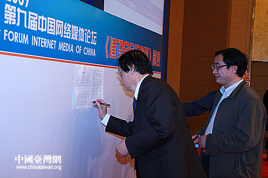 網(wǎng)絡(luò)媒體代表簽署《建設(shè)安全互聯(lián)網(wǎng)宣言》(中國臺(tái)灣網(wǎng) 鐘寶華 攝)