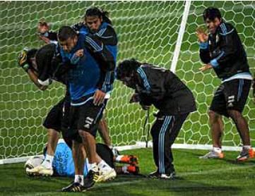 阿根廷的整堂訓練課都充滿了歡聲笑語,笑聲持續不斷的從球員和馬拉多納所在的地方傳過來。一開始他們進行的是分組對抗,結果梅西和伊瓜因一方以3-1輕松勝出,另外一方打進唯一進球的是進來轉狀態極為出色的特維斯。之后馬拉多納還組織了防守演練,和中場對抗。而他們對抗的目標就是以梅西和伊瓜因為首的阿根廷豪華進攻群。