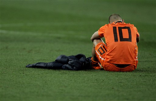 荷蘭敗了,敗得徹底卻讓人如此神傷。我不敢相信,有人會對這樣的荷蘭口出不敬,我不敢相信,有人會把這樣的荷蘭貼上丑陋的標簽。所有人都信服西班牙的實力,但這并不代表足球只有一種踢法。不是只有藝術足球才是美麗的足球。難道堅韌、頑強、勇敢不值得尊敬?難道11名戰士永不退縮的精神不值得尊敬?