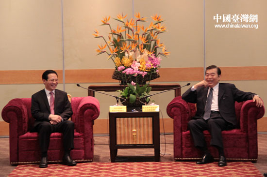 6月23日下午,臺北世貿中心董事長王志剛在臺北會見河北省委副書記付志方一行,雙方進行了親切友好的交談。(攝影 中國臺灣網 陳寧)