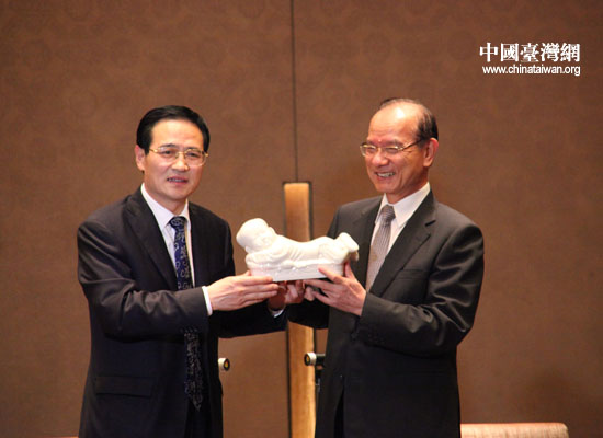 中共河北省委副書記付志方與中國國民黨榮副主席林豐正互贈禮品(攝影 中國臺灣網 陳寧)