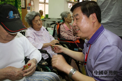 北京市臺辦副主任高振生與老人們親切交談。