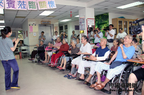 “高山青、澗水藍(lán)……”在“超女”李娜悠揚(yáng)及極富帶動性的歌聲中,嘉義利河伯養(yǎng)老院的70余位老人一起唱起了這首傳唱度極高的報道歌曲。“哈利路亞,”生活在這里的張林滿老人在歌聲中淚流滿面,“這是我很熟悉的旋律,她長的很清秀,看到她活潑的樣子就像看到了自己的孩子一樣,很溫暖”。雖然老人夾雜著閩南語的普通話記者并不能完全聽懂,但她眼中的淚水卻代表了千言萬語。