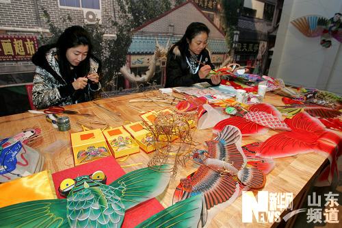 1月9日,手工藝人在制作風箏。