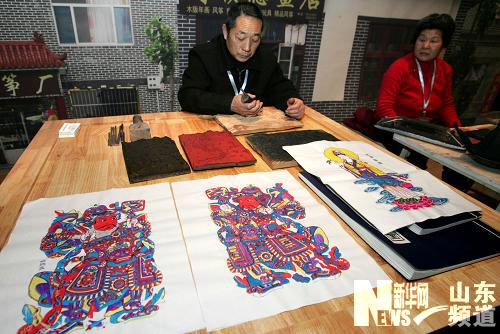 1月9日,手工藝人在制作木版年畫。