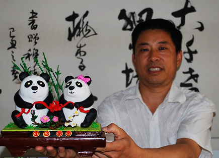 穆緒建展示面塑熊貓“團團”“圓圓”