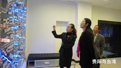 貴陽市臺辦主任李靜(中)、副主任劉筑琪(左)與龍博公司總經(jīng)理周紅親切交談