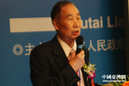 臺(tái)灣中藥商業(yè)同業(yè)公會(huì)聯(lián)合會(huì)理事長林所在“筑臺(tái)兩地中醫(yī)藥文化研討會(huì)”上發(fā)言 (中國臺(tái)灣網(wǎng) 王曉蕊 攝)