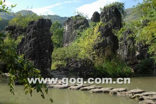 天星橋景區(qū)位于黃果樹(shù)瀑布下游7公里處,分為天然盆景區(qū)、天星洞和水上石林三大區(qū)。景區(qū)集山、水、林、洞為一體,石景、水景、樹(shù)景、洞景互相融合,靈性十足。“風(fēng)刀水劍刻就萬(wàn)頃盆景,根筆藤墨繪制千古絕畫(huà)”的對(duì)聯(lián),道出了天星橋景區(qū)的神韻。