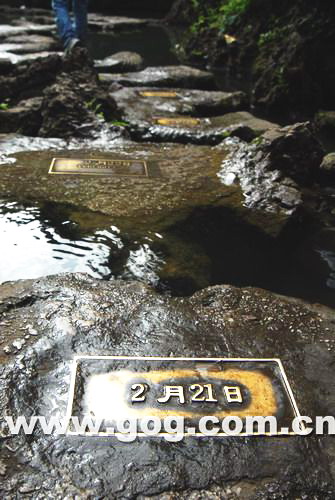 走入景區(qū),最先經(jīng)過(guò)的便是數(shù)生園。這是一片水上石林區(qū),園中碧水環(huán)石,于水上奇石間,分布了延伸到前方的彎彎曲曲的石板小道。這些石板共有365塊,每一塊上都刻有日期,從1月1日走起,總有一塊上刻著你的生日。據(jù)說(shuō),若你在刻有你生日的石塊上停留片刻,會(huì)給你帶來(lái)整年的好運(yùn)。沿石板小道一路走來(lái),穿行于石壁、石壕、石縫之中,可見(jiàn)天然而成的一線(xiàn)天,縱有苗條身軀也得側(cè)身而行的側(cè)身巖,迷宮一般的尋根巖,交錯(cuò)盤(pán)旋的鴛鴦藤和自成一景的美女榕,還有高老莊——當(dāng)年《西游記》中豬八戒背媳婦的地方。數(shù)生園中步步為景,仿佛進(jìn)入石林仙境,令人在奇石奇樹(shù)中不禁感嘆大自然的精巧工藝。