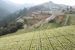華崗渡假村以栽種和銷售高冷蔬菜為主要營業項目,屋后即可見農田映照合歡西峰,夏天還是避暑勝地呢!