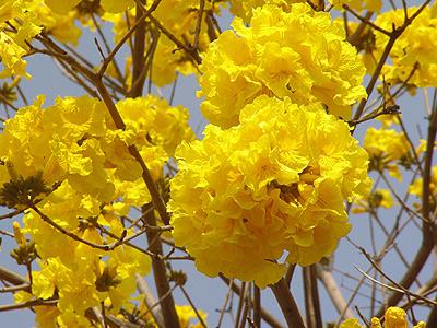 黃金風鈴木為巴西的國花,又名為伊蓓花,每年的三月是黃花盛開的季節,開花時間相當短暫,大約十多天,是一種會隨著四季變化而更換風貌的樹,黃金風鈴木盛開時花多葉少,金黃亮麗風姿壯觀。