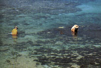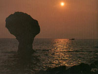 靠海吃海,海洋不僅是小琉球居民最重要的生計來源,亦是島上觀光最大的本錢。小琉球被裙礁環(huán)繞,海岸線上幾乎處處是美景,其中美人洞、烏鬼洞是島上兩大風景區(qū),皆以奇岸怪礁著稱;碧波之下淺海處,叢生著一葉葉美麗的珊瑚,色澤瑰奇的熱帶魚梭巡其中,加上海星、海膽、貝殼、夜光螺……,熱鬧多彩,令人眼花繚亂,只要簡單的裝備,就可一親海底世界的芳澤。