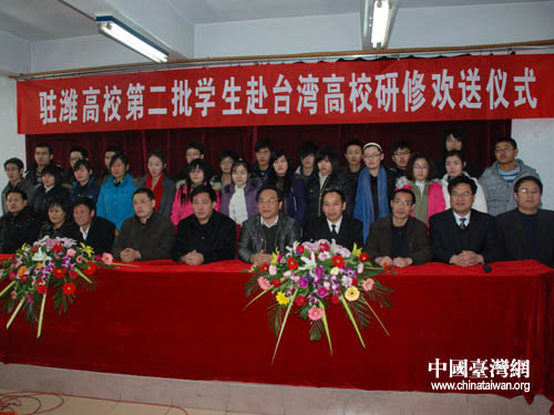 中國臺(tái)灣網(wǎng)1月15日濰坊消息 1月14日,第二批駐濰高校赴臺(tái)研修學(xué)生歡送儀式舉行,42名學(xué)生將在2月中下旬赴臺(tái)學(xué)習(xí)。據(jù)悉,2009年,濰坊開創(chuàng)山東省高等職業(yè)教育的先河,曾選派18名學(xué)生赴臺(tái)研修。隨著駐濰高校與臺(tái)灣高校交流的深入,濰坊已成為全國職業(yè)教育對臺(tái)交流最活躍的地區(qū)。