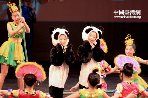時間在不知不覺中流淌,歡樂在源源不斷地涌出。當最后一個節目《團團圓圓》上場時,現場氣氛已經達到了最高潮。大陸贈臺大熊貓團團和圓圓,被小天使們表演得活靈活現,他們時而笨拙,時而靈巧。不僅勾起了小觀眾們的濃厚興趣,也通過歌聲和舞蹈傳遞出他們的美好心愿。