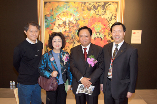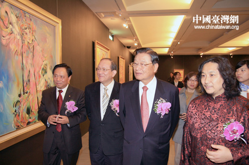 中國臺灣網1月30日臺北消息 30日上午,2010中國國粹油畫藝術精品展在臺北市孫中山紀念館開幕。中華全國臺灣同胞聯誼會會長梁國揚、臺灣海基會董事長江丙坤參觀了畫展!。ㄖ袊_灣網 田云鵬 攝)