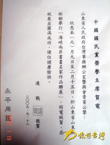 江丙坤董事長(zhǎng)的賀詞(你好臺(tái)灣網(wǎng) 圖)